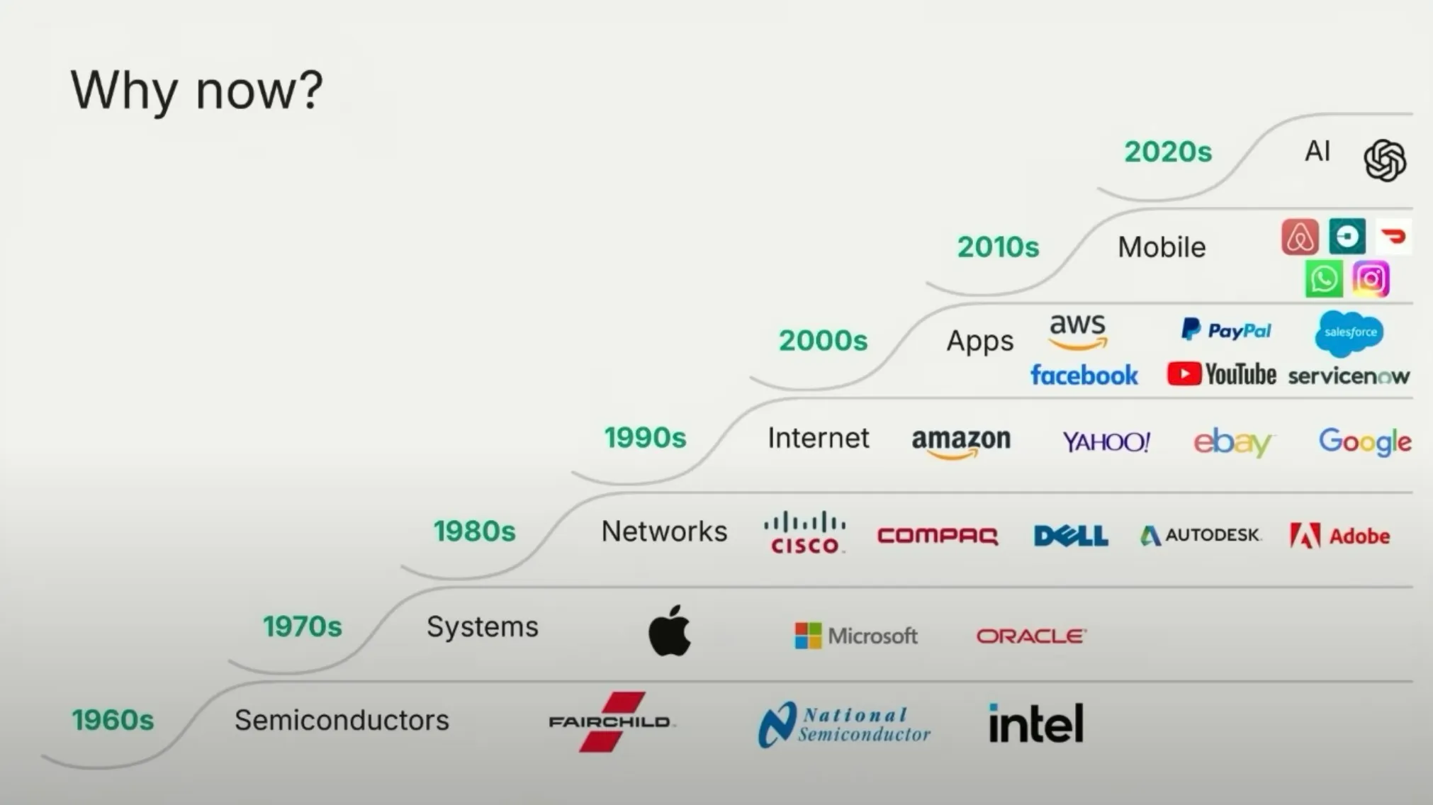 I was recently watching this talk from Sequoia about the startup opportunities in the AI landscape, and this figure representing the major organizations for each technological wave really stood out to me: