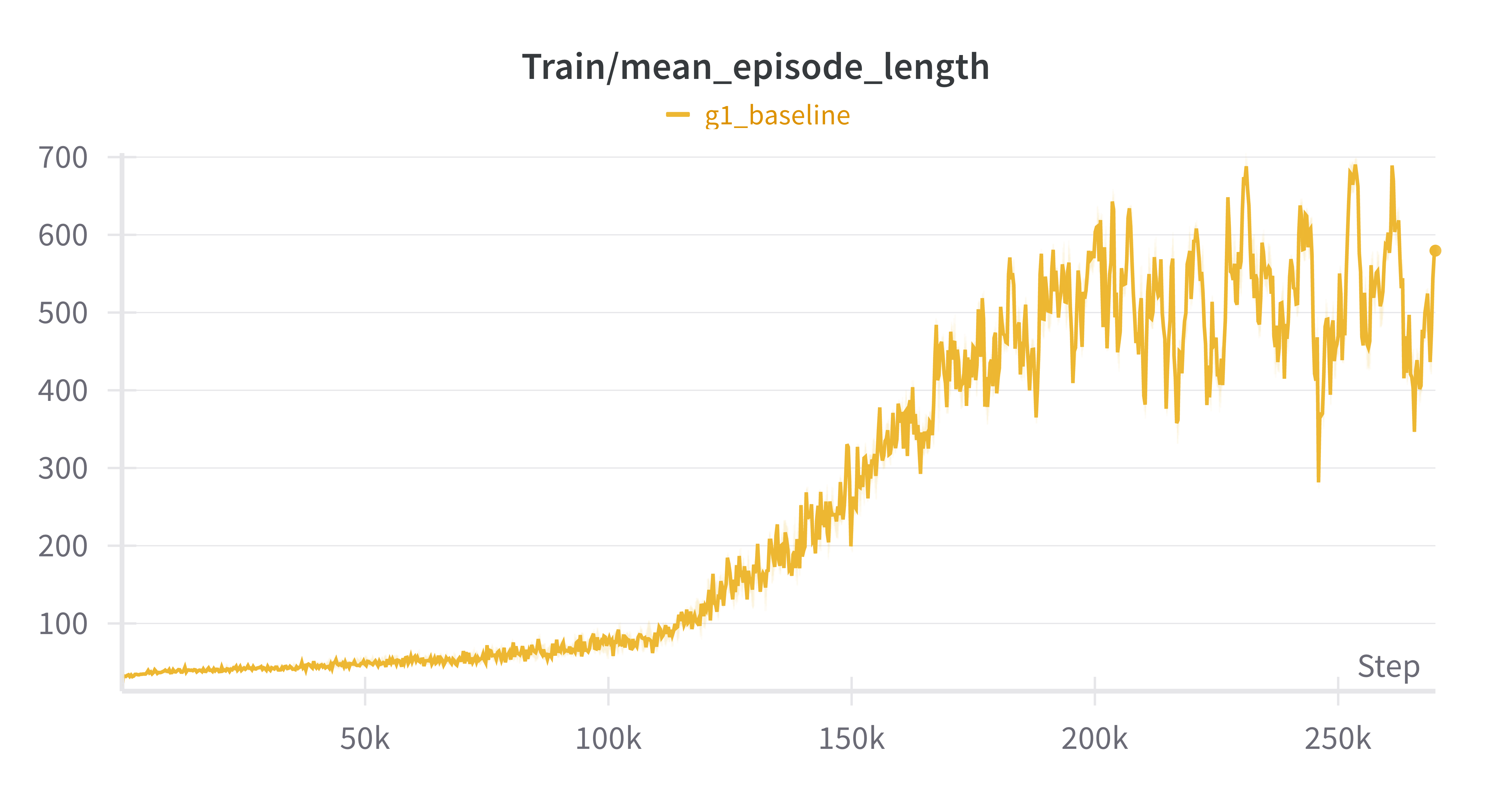 While training walking policies, you’d typically look at other metrics like average length per episode, reward direction (is it increasing overall), etc.