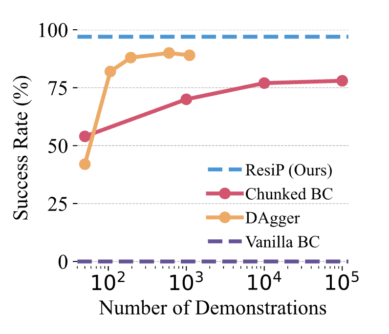 Imagine you have a million humans walking on a street, and you were able to collect all of that data and train a robot to learn how to walk. It’s probably doable, but if you knock the robot off a bit it will fall. Because how much data will we have around falling? Probably not enough!