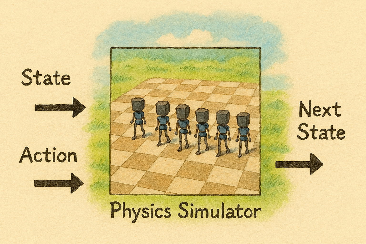 In order to better understand what the sim2real gap is, one must first understand what a simulator is. From first principles, a simulator is a mapping between the current state and action to predict the next state: